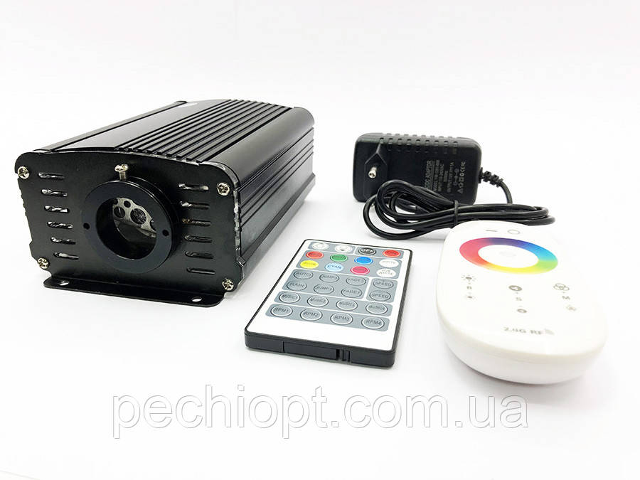 Світлогенератор оптоволоконний 16W RGBW підключаються до електромережі в 220 В., має можливість змінювати кольорову гаму, виходячи з ваших побажань. Зміна кольору, частота перемикання, яскравість і тьмяність - регулюються дистанційно, за допомогою пульта, який також входить в комплект. Додаткова функція - «ефект мерехтіння», зробить ваше зоряне небо більш реалістичним і правдоподібним.